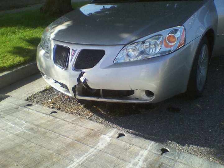 On Tuesday I hit a large wood box on the freeway going 60 mph and this is what happened to my car. I wish I could have avoided it but it flew into my lane after another car knicked it. I drove for like 5 miles without any issues and then my car made aweful noises and started overheating. It still kept screaching for like 5 min after I turned it off. I started panicking and of course tried to get a hold of my Dad, who had already left the house. I dont like dealing with this kind of stuff on my own. I called my insurance who took care of everything for me. Within 20 min I had a rental and a tow truck on the way. My radiator was gone along with many other things. It caused $2500 in damages. RIDICULUS I tell you. I was livid, still am. I wasnt wearing my seatbelt either and ended up with whiplash and a sore back. I usually wear it, I dont know what happened that day! I got to drive around in a 2010 Ford Focus for the next 3 days and can I just say,"Those cars are awesome"! I would totally buy one. I actually wanted to keep it for thw weekend but unfortunately my car was fixed on Friday. The front end looks so pretty! I am glad I am alive and no one was hurt but wish I could hurt the person who let that box drop on the freeway.